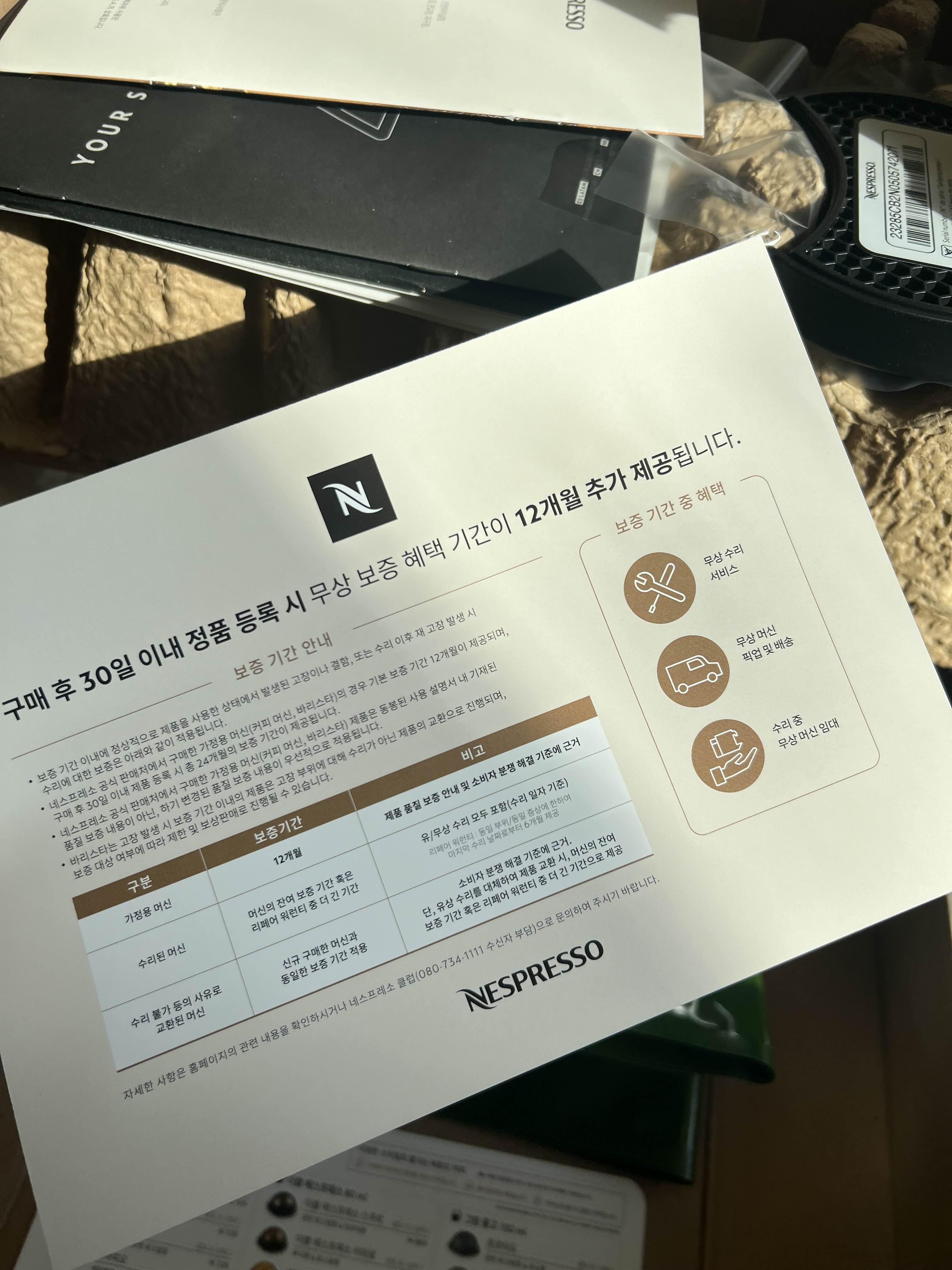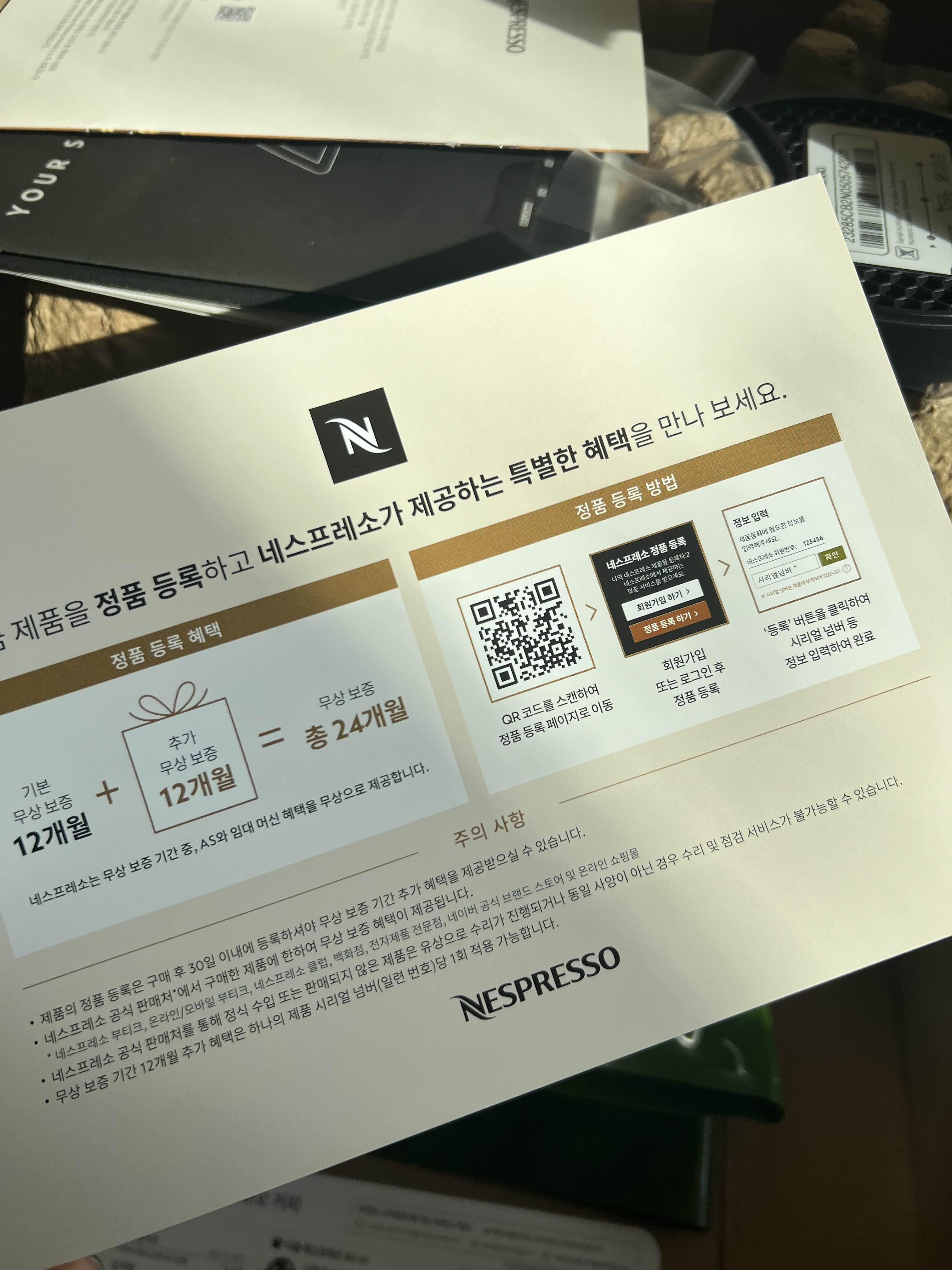바로 네스프레소 공홈에 들어가 정품등록을 해준다